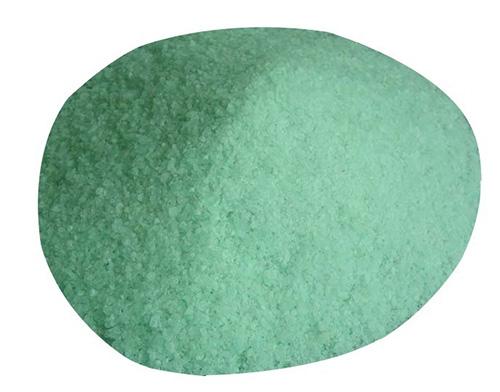 性能:暗淡藍綠單斜晶系晶體性粉末或顆粒。無臭,具有咸的收斂味。在干燥空氣中會風(fēng)化,在潮濕空氣中易氧化成棕黃色堿式硫酸鐵。易溶于水,不溶于乙醇。